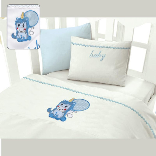 Σεντόνια Κούνιας (Σετ) (120X160) Μονόκερος Σιέλ - MCDECOR