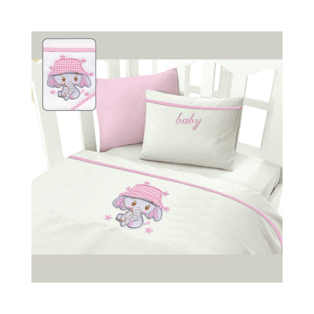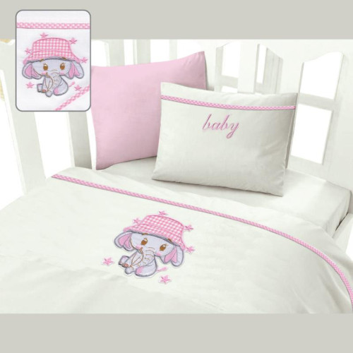 Σεντόνια Κούνιας (Σετ) (120X160) Ελεφαντάκι Ρόζ - MCDECOR