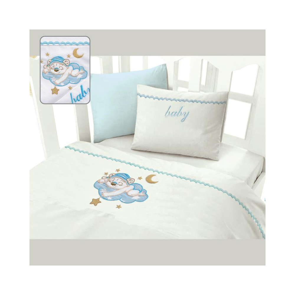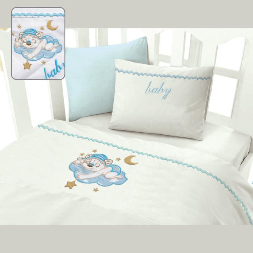 Σεντόνια Κούνιας (Σετ) με απλικέ κέντημα και αζούρ.