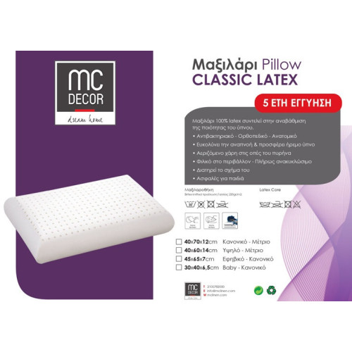 Μαξιλάρι Ύπνου Latex (40X60X14) Υψηλό - MCDECOR