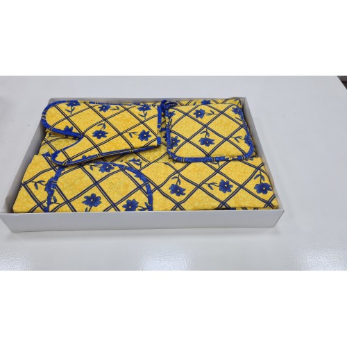 Σετ κουζίνας  12  τεμαχίων βαμβάκι 100% , 1 τραπεζομάντηλο 150X220 , 1 ποδιά , 1 γάντι , 1 πιάστρα , 2 σουπλά , 6 πετσετάκια